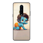 Tempered Glass Coated Metal Back Case for Oneplus 8 Cute Little Shree Krishna