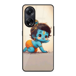 Tempered Glass Coated Metal Back Case for Oppo F23 5G Cute Little Shree Krishna
