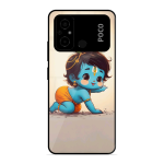 Tempered Glass Coated Metal Back Case for Poco C55 Cute Little Shree Krishna
