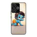 Tempered Glass Coated Metal Back Case for Poco M6 Plus 5G Cute Little Shree Krishna
