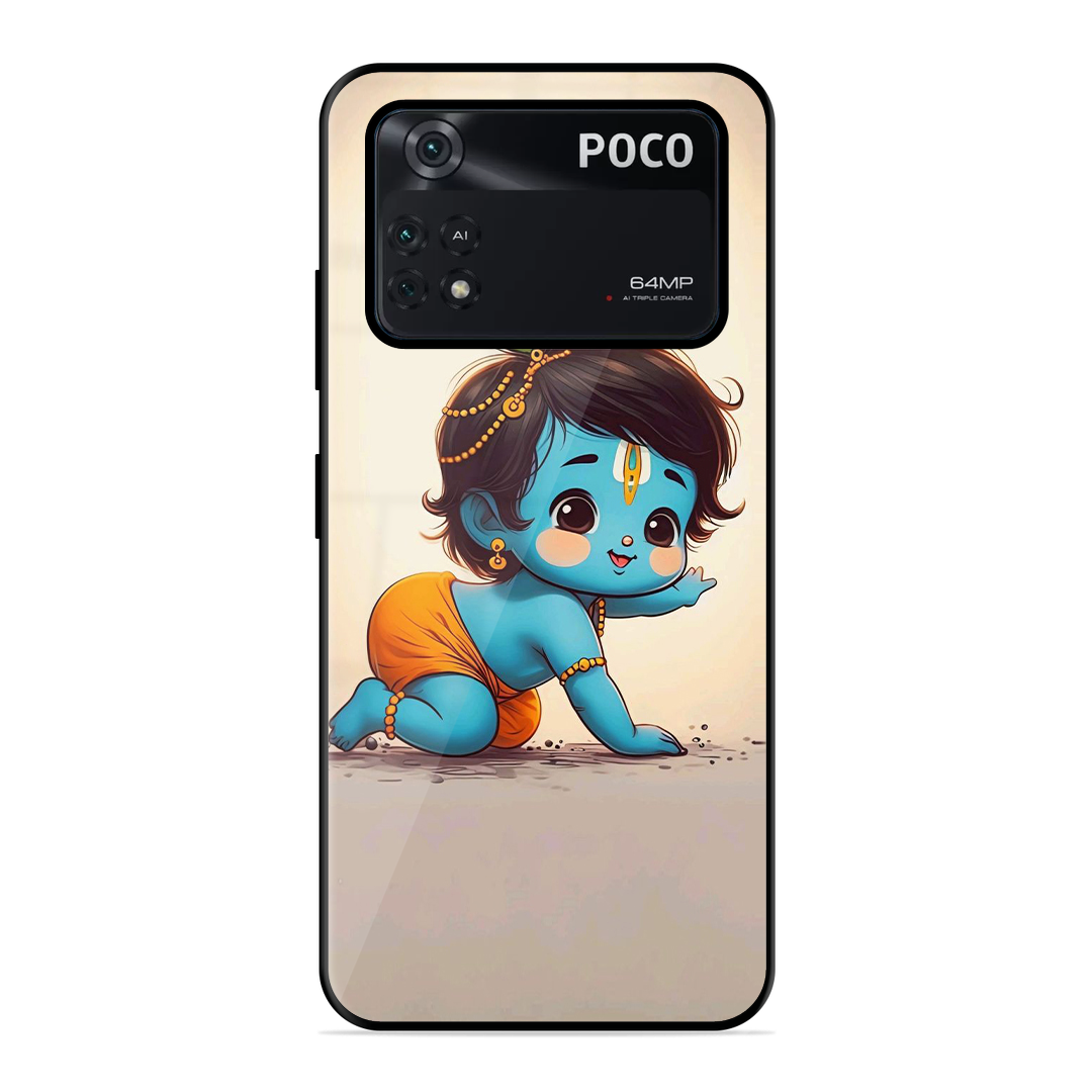 Tempered Glass Coated Metal Back Case for Poco X4 Pro 5G Cute Little Shree Krishna