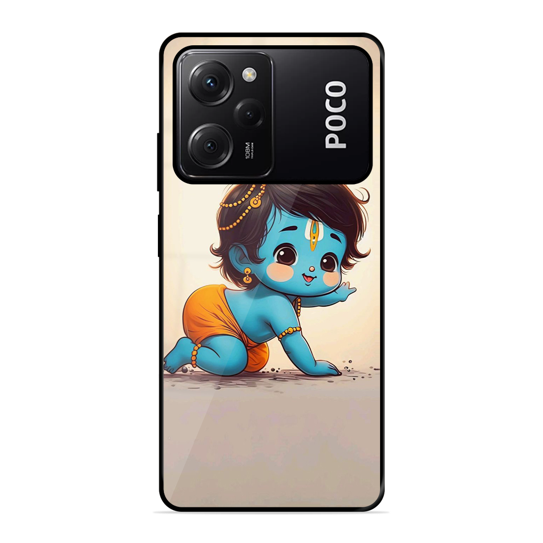 Tempered Glass Coated Metal Back Case for Poco X5 Pro 5G Cute Little Shree Krishna