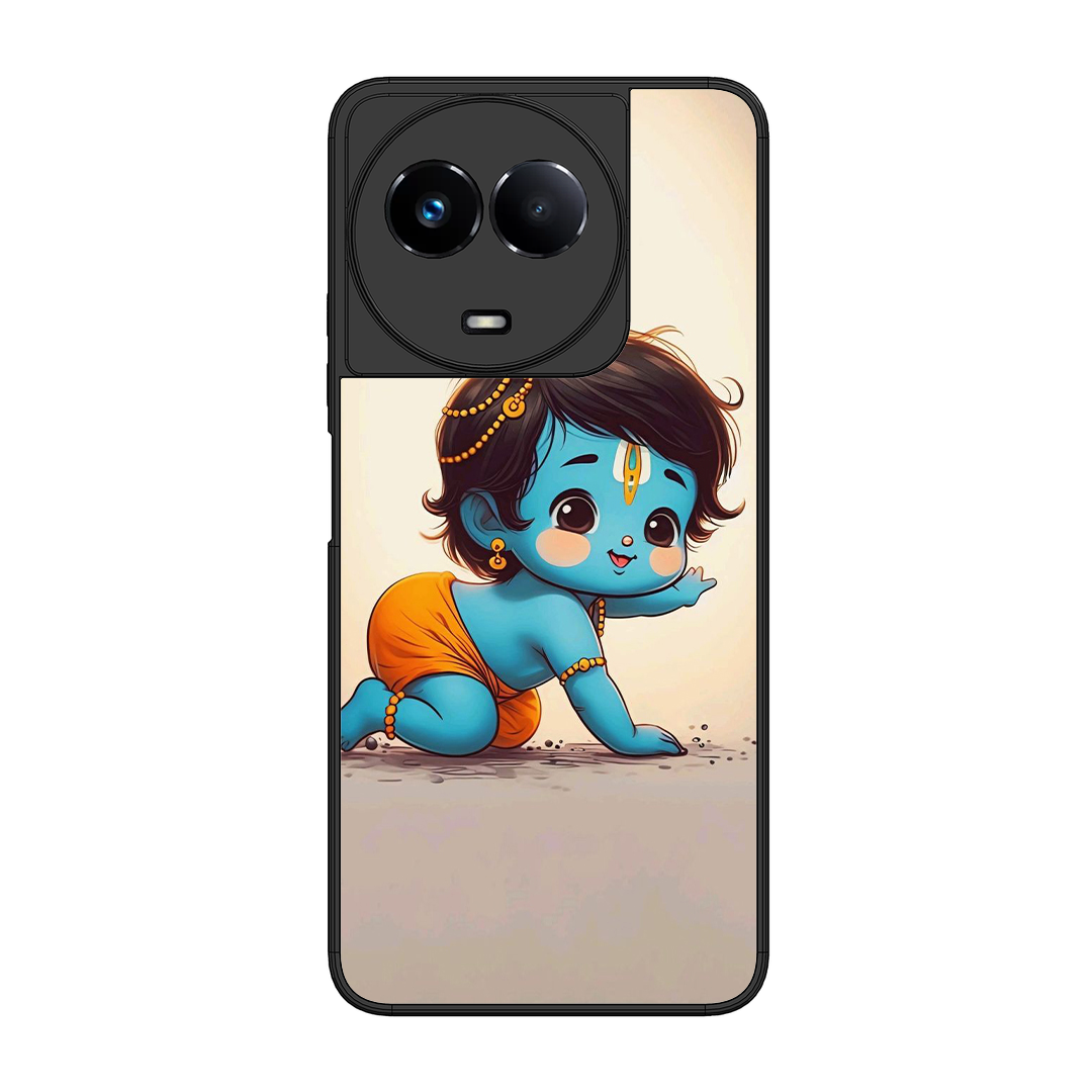 Tempered Glass Coated Metal Back Case for Realme 11 5G Cute Little Shree Krishna