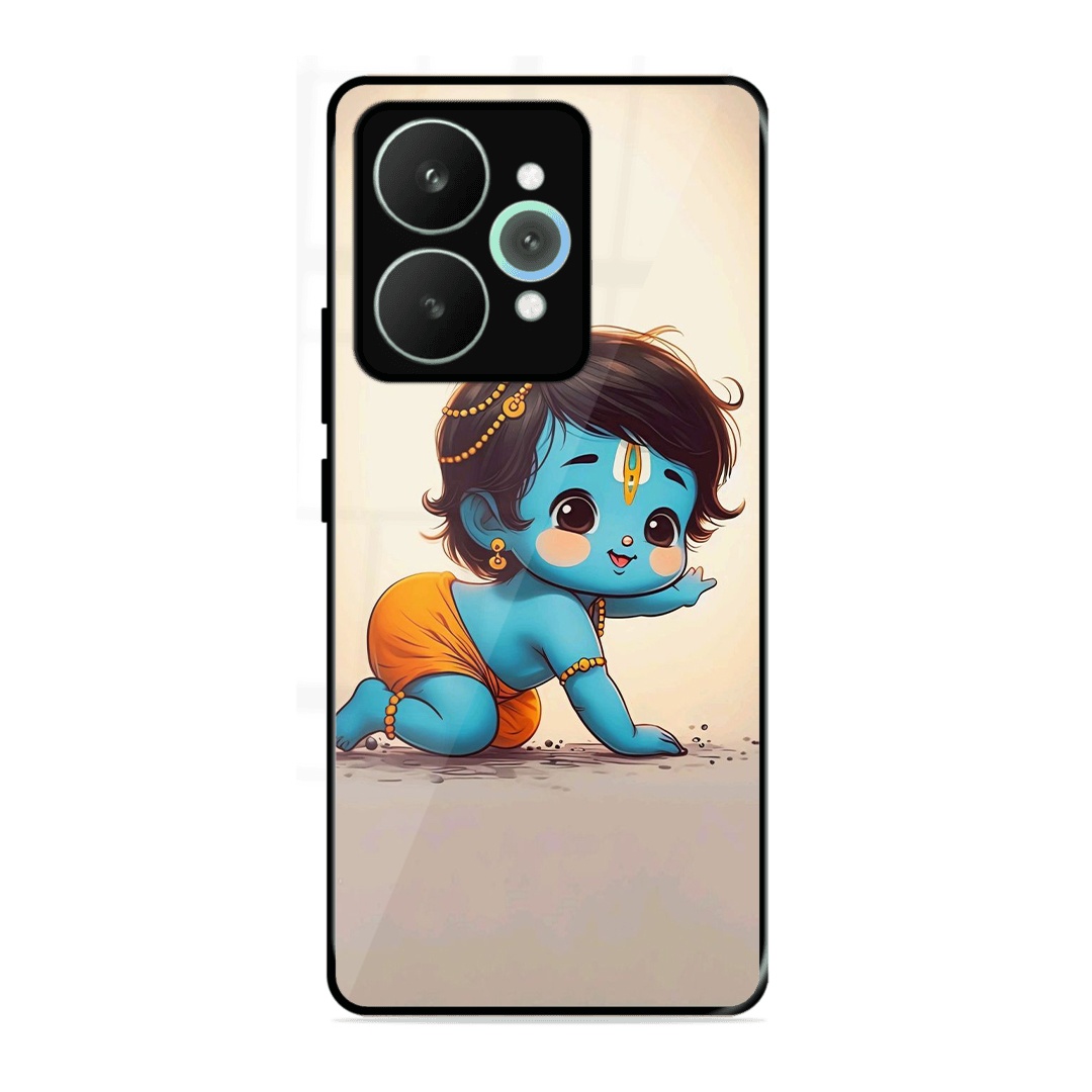 Introducing the ultimate fusion of bold design and rugged protection: the Tempered Glass Coated Metal Back Case for {brand} Realme-155G Cute Little Shree Krishna. Thoughtfully crafted for those who demand both high performance and high style, this premium case redefines mobile protection with a stunning, custom twist.