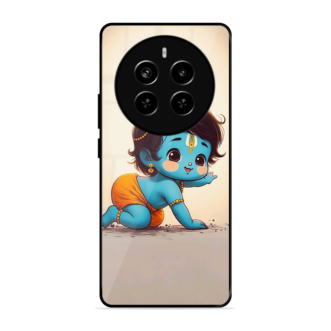 Tempered Glass Coated Metal Back Case for Realme P1 Pro 5G Cute Little Shree Krishna