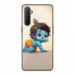 Tempered Glass Coated Metal Back Case for Realme Xt Cute Little Shree Krishna