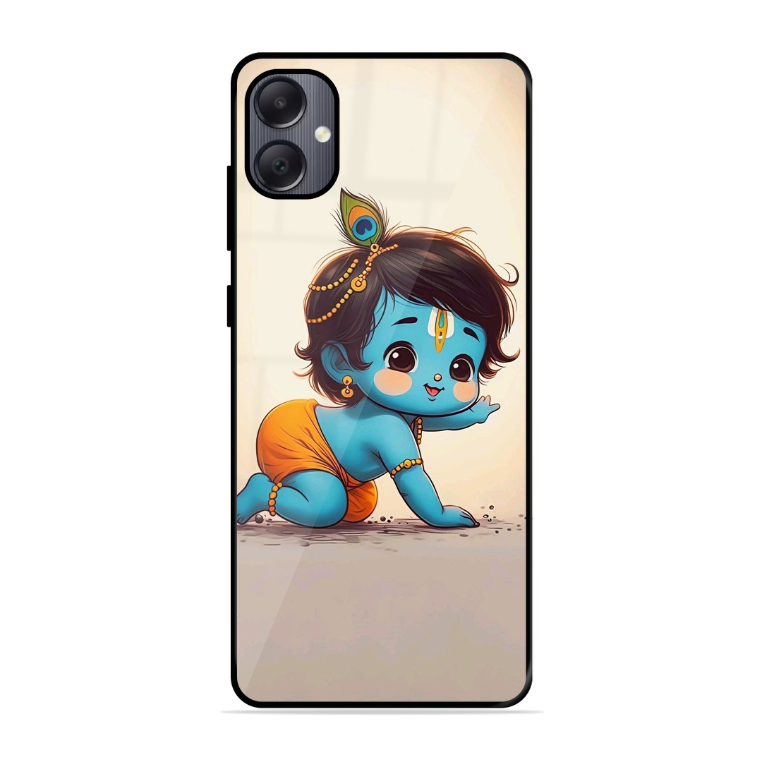 Tempered Glass Coated Metal Back Case for Samsung-Galaxy-A05 Cute Little Shree Krishna