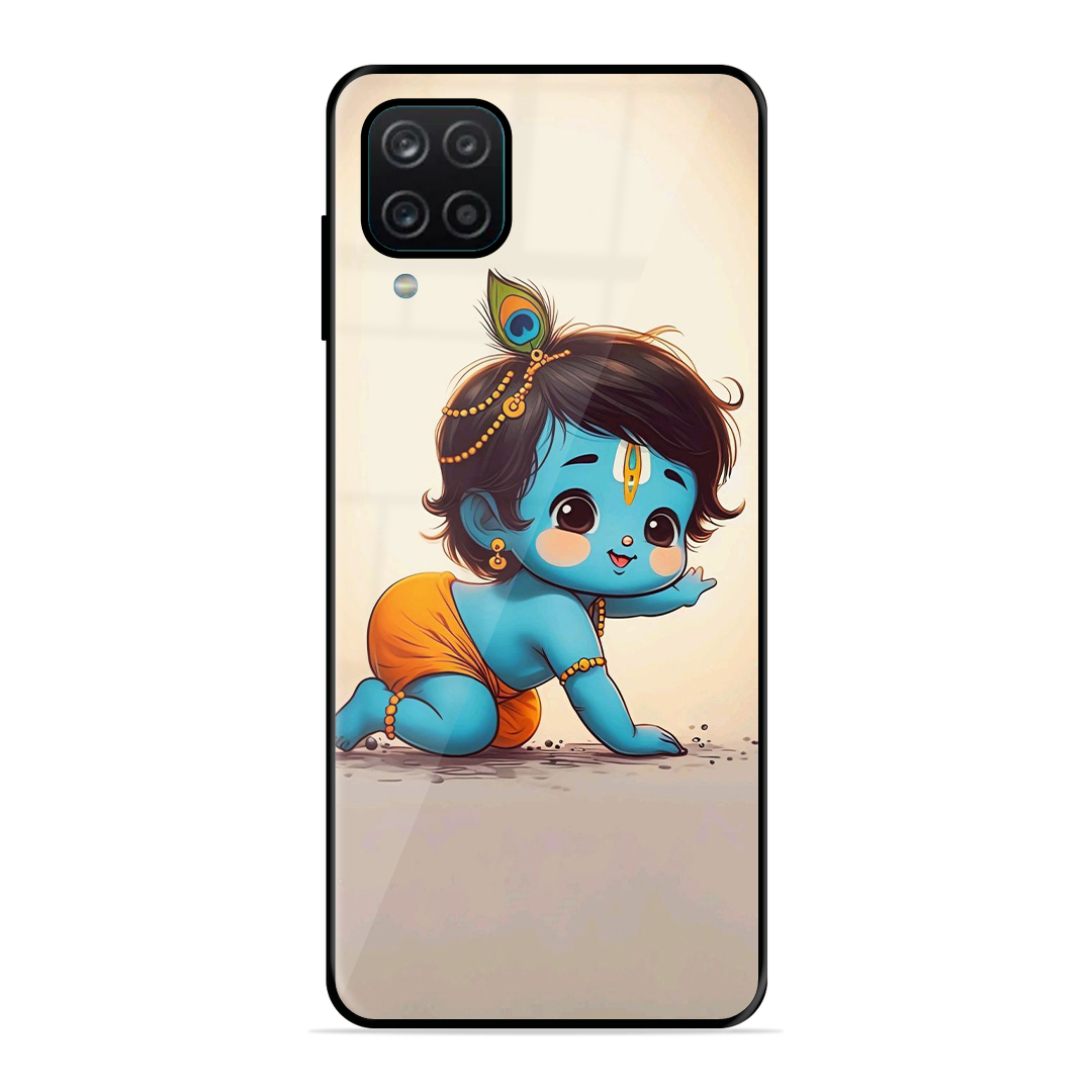 Introducing the ultimate fusion of bold design and rugged protection: the Tempered Glass Coated Metal Back Case for {brand} Samsung Galaxy A12 Cute Little Shree Krishna. Thoughtfully crafted for those who demand both high performance and high style, this premium case redefines mobile protection with a stunning, custom twist.