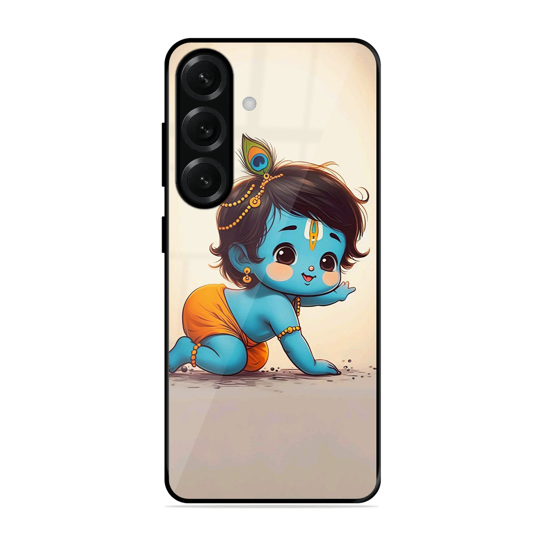Tempered Glass Coated Metal Back Case for Samsung Galaxy S25 Plus 5G Cute Little Shree Krishna