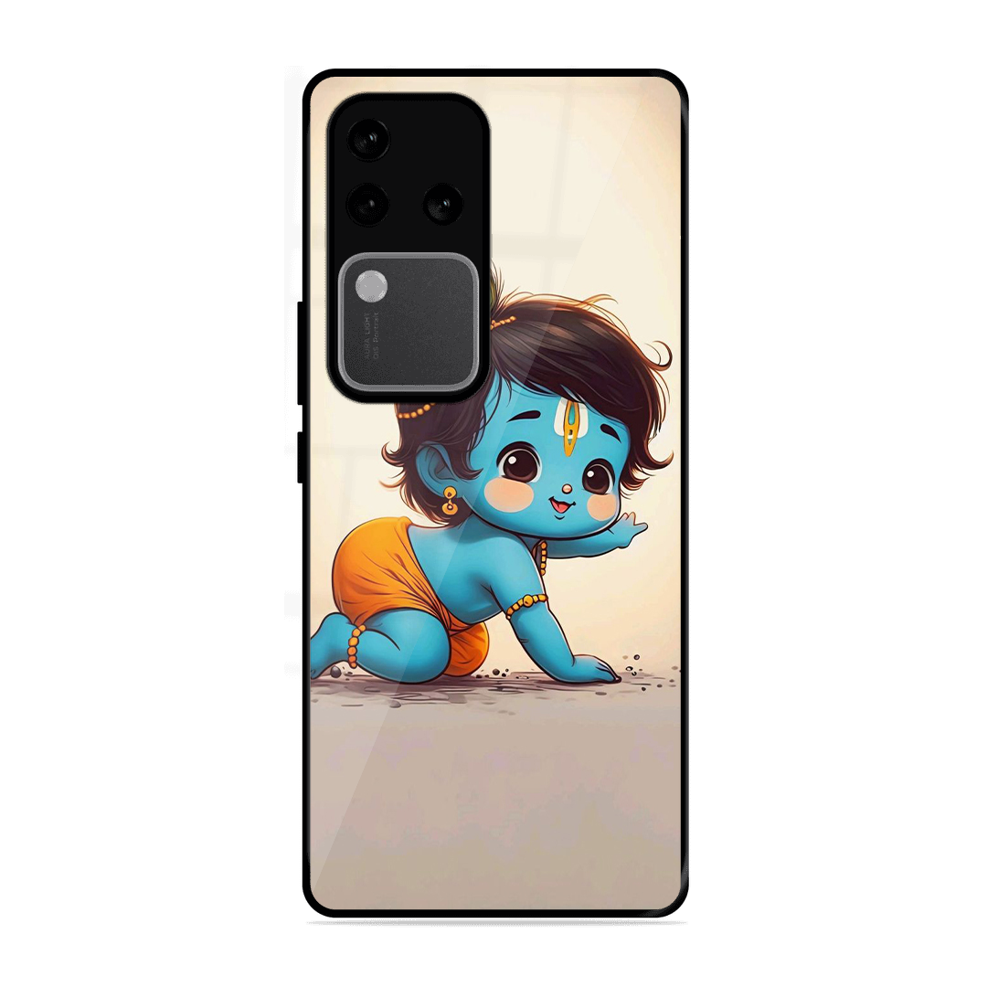 Tempered Glass Coated Metal Back Case for Vivo V30 Pro 5G Cute Little Shree Krishna