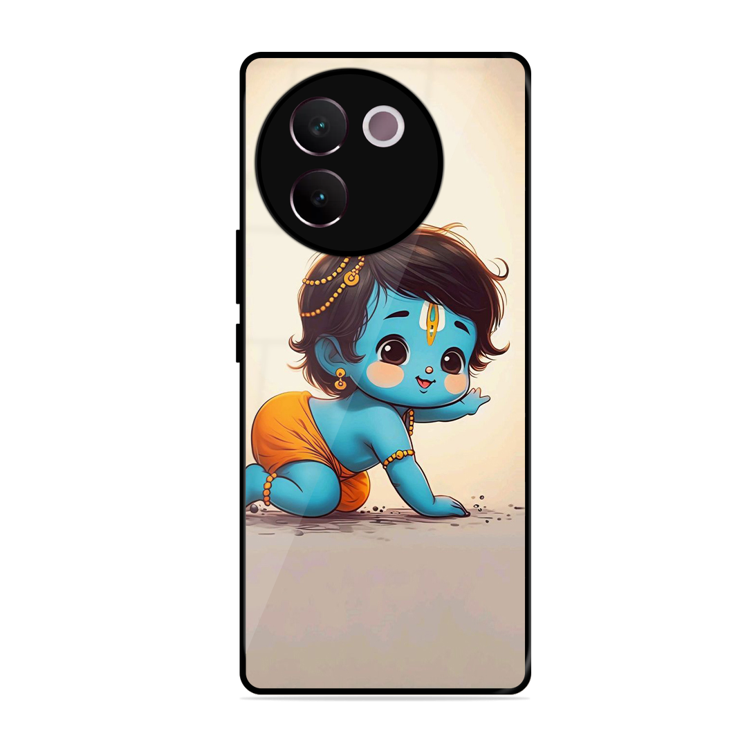 Tempered Glass Coated Metal Back Case for Vivo V30E 5G Cute Little Shree Krishna