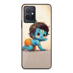 Tempered Glass Coated Metal Back Case for Vivo-Y75 5G Cute Little Shree Krishna