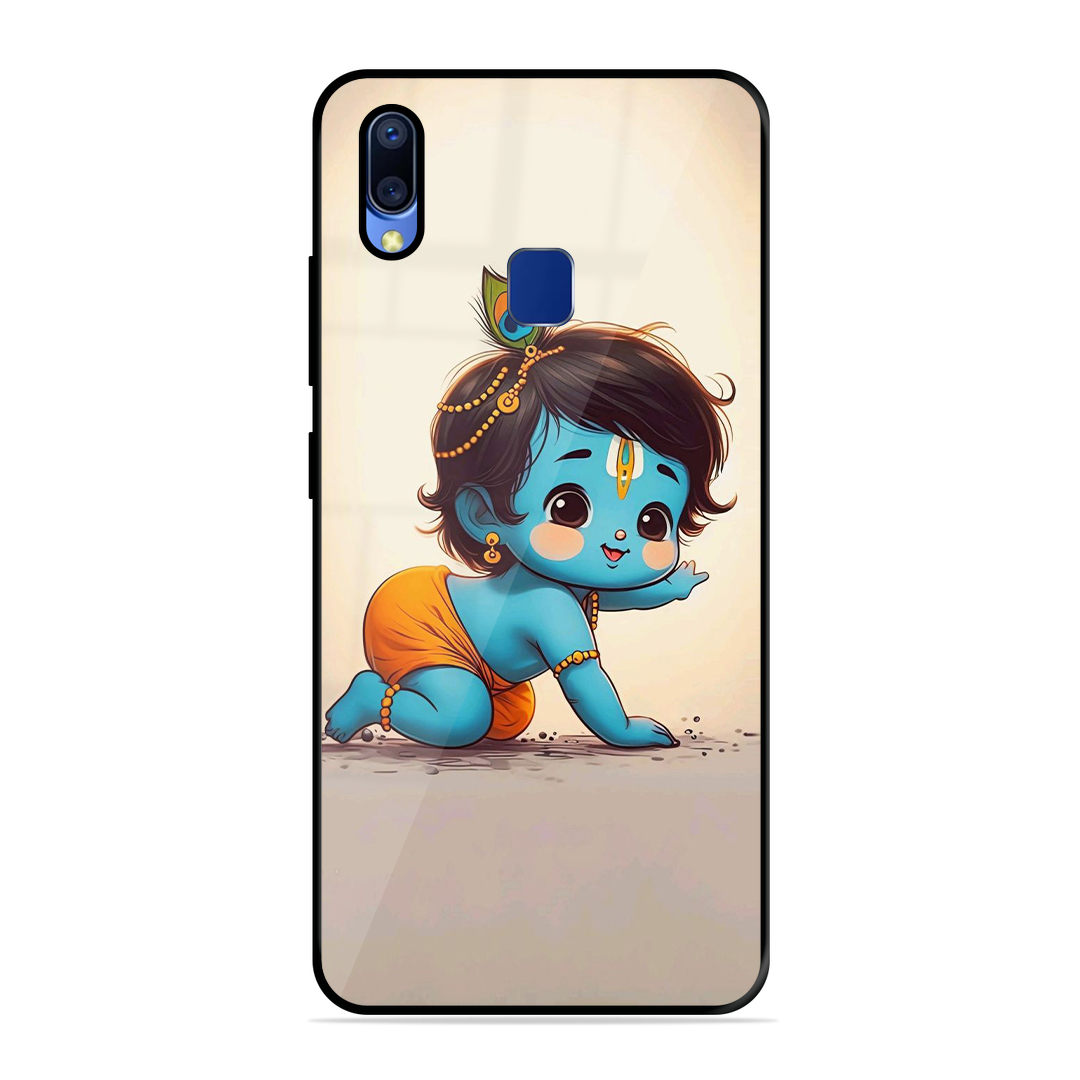 Tempered Glass Coated Metal Back Case for Vivo Y95 Cute Little Shree Krishna