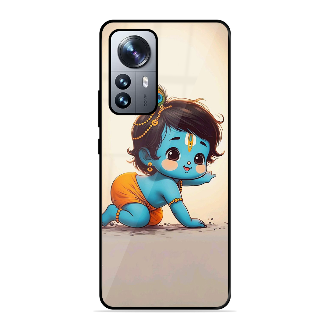 Tempered Glass Coated Metal Back Case for Xiaomi Mi 12 Pro 5G Cute Little Shree Krishna