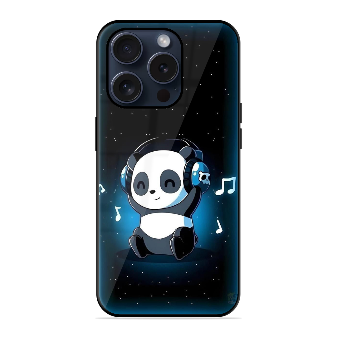 Tempered Glass Coated Metal Back Case for Apple Iphone 15 Pro Max DJ Panda