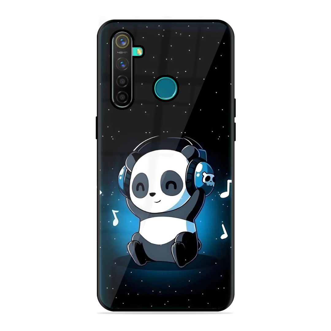 Tempered Glass Coated Metal Back Case for Realme 5 Pro DJ Panda