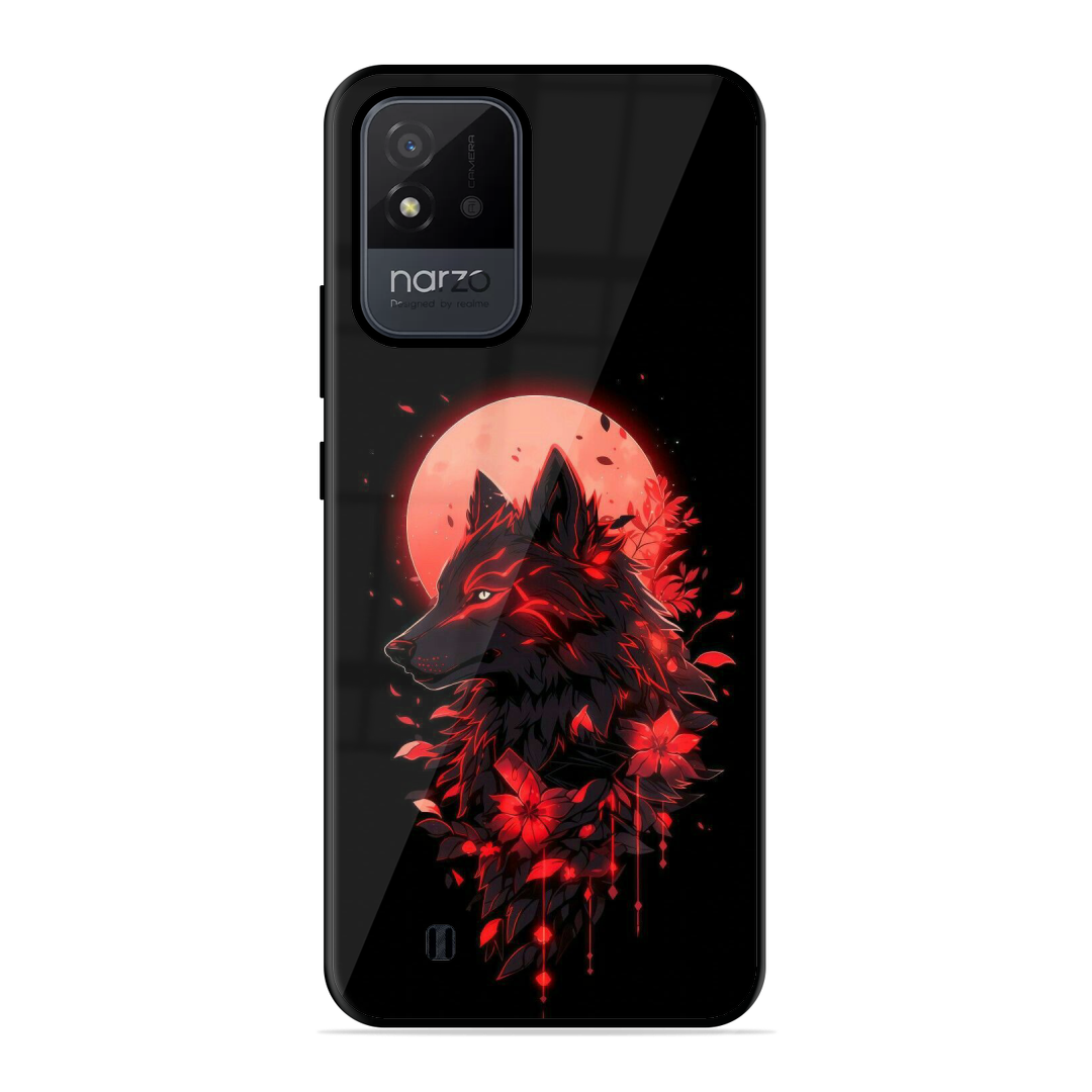 Tempered Glass Coated Metal Back Case for Realme Narzo 50I Eternal Wolf