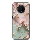 Tempered Glass Coated Metal Back Case for Oneplus 7T Flower With Butterfly