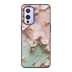 Tempered Glass Coated Metal Back Case for Oneplus 9 5G Flower With Butterfly
