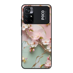 Tempered Glass Coated Metal Back Case for Poco M4 Pro 5G Flower With Butterfly
