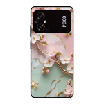 Tempered Glass Coated Metal Back Case for Poco M5 Flower With Butterfly