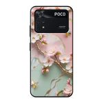 Tempered Glass Coated Metal Back Case for Poco X4 Pro 5G Flower With Butterfly