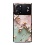 Tempered Glass Coated Metal Back Case for Poco X5 Pro 5G Flower With Butterfly