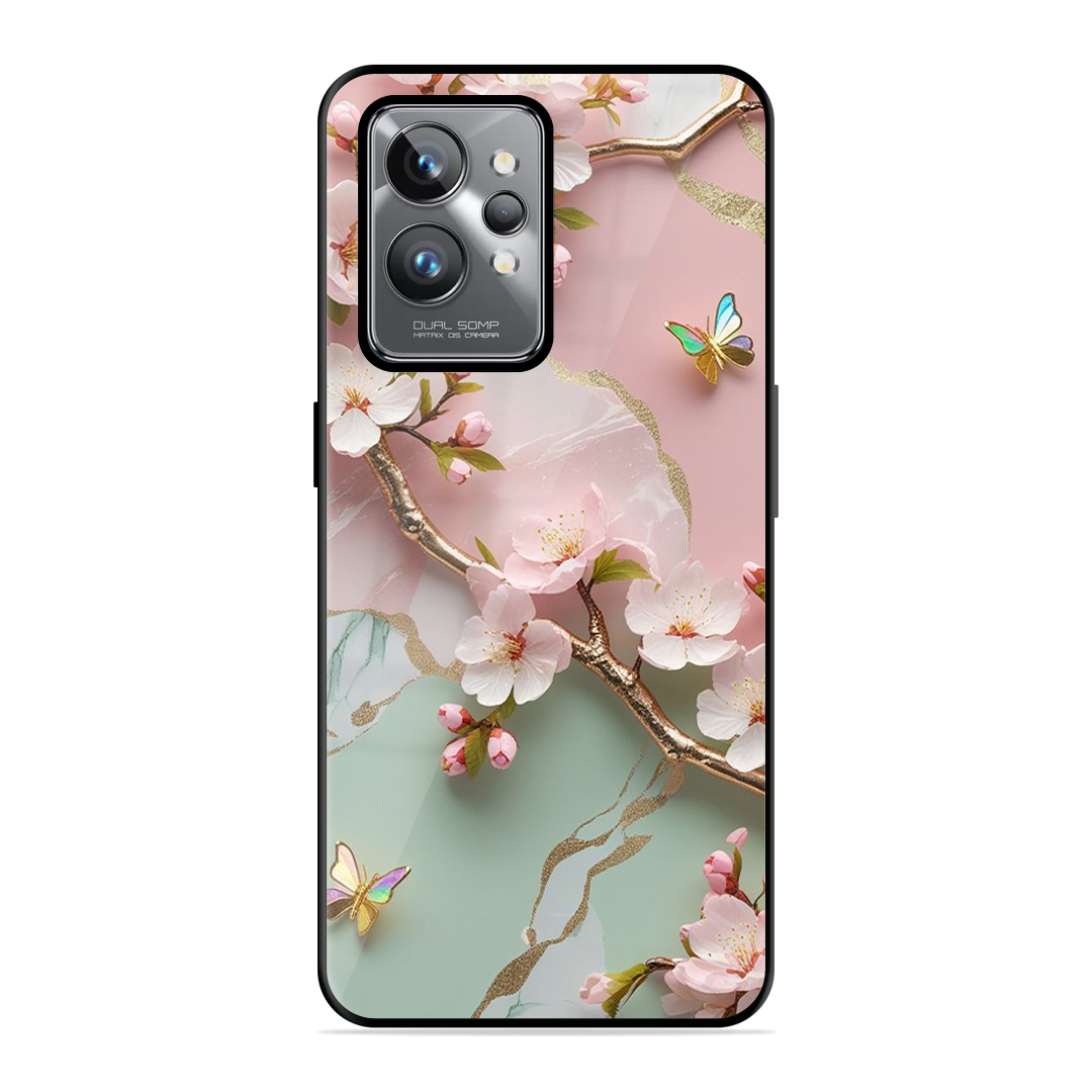 Tempered Glass Coated Metal Back Case for Realme Gt2 Pro Flower With Butterfly