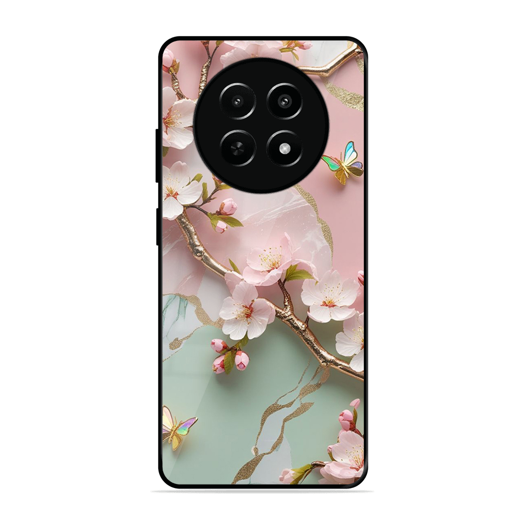 Tempered Glass Coated Metal Back Case for Realme Narzo N65 5G Flower With Butterfly
