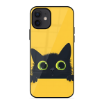Tempered Glass Coated Metal Back Case for Apple Iphone 12 Mini Googly Kitty
