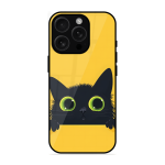 Tempered Glass Coated Metal Back Case for Apple Iphone 16 Pro Googly Kitty