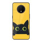 Tempered Glass Coated Metal Back Case for Oneplus 7T Googly Kitty