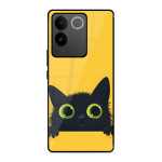 Tempered Glass Coated Metal Back Case for Vivo T2 Pro 5G Googly Kitty