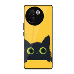 Tempered Glass Coated Metal Back Case for Vivo V30E 5G Googly Kitty