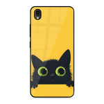 Tempered Glass Coated Metal Back Case for Vivo Y90 Googly Kitty