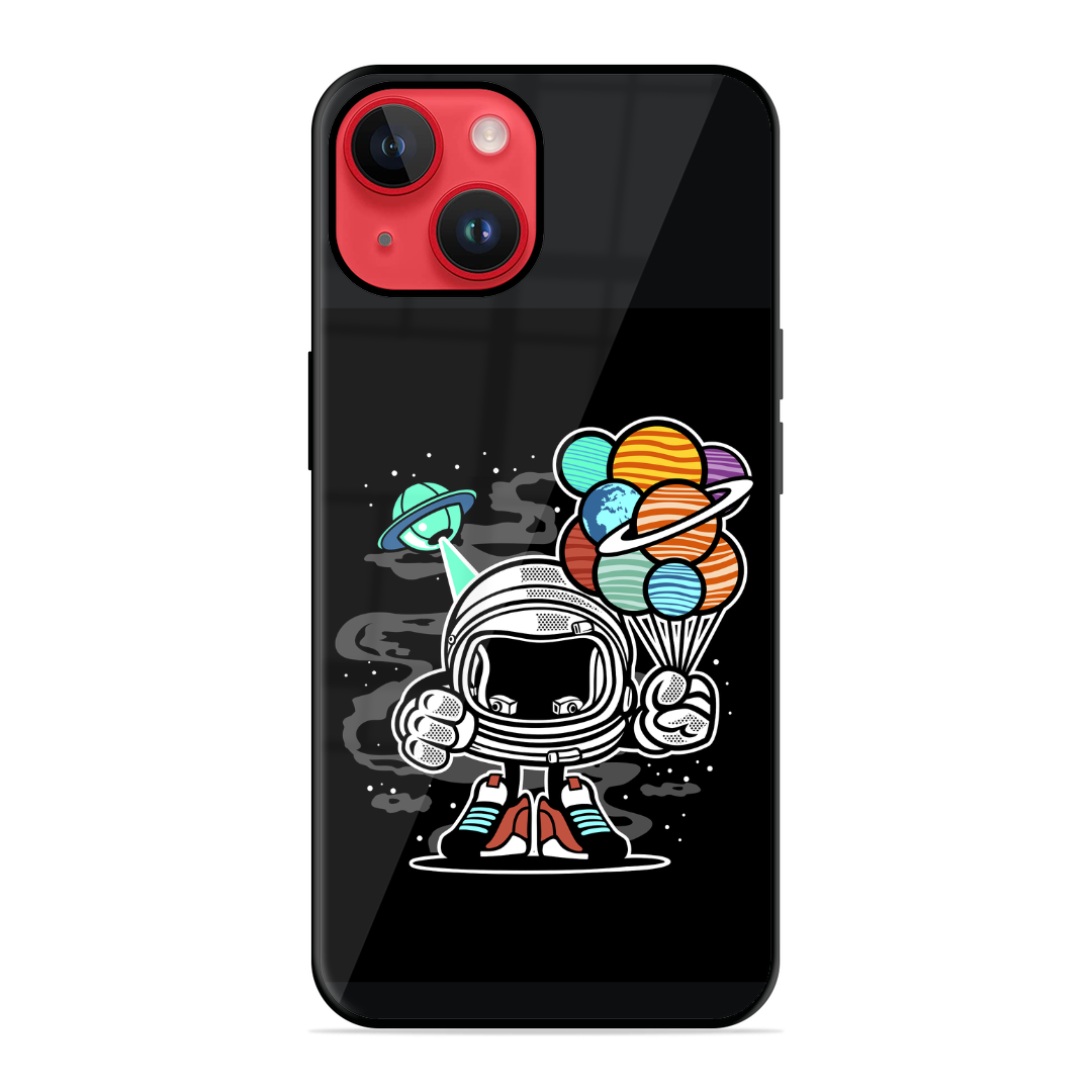 Tempered Glass Coated Metal Back Case for Apple Iphone 14 Hollow Astronaut