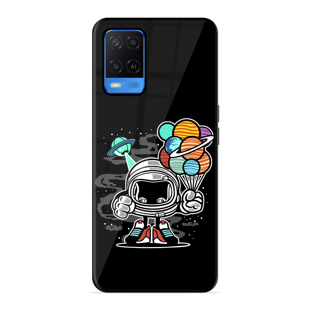 Tempered Glass Coated Metal Back Case for Oppo A54 Hollow Astronaut