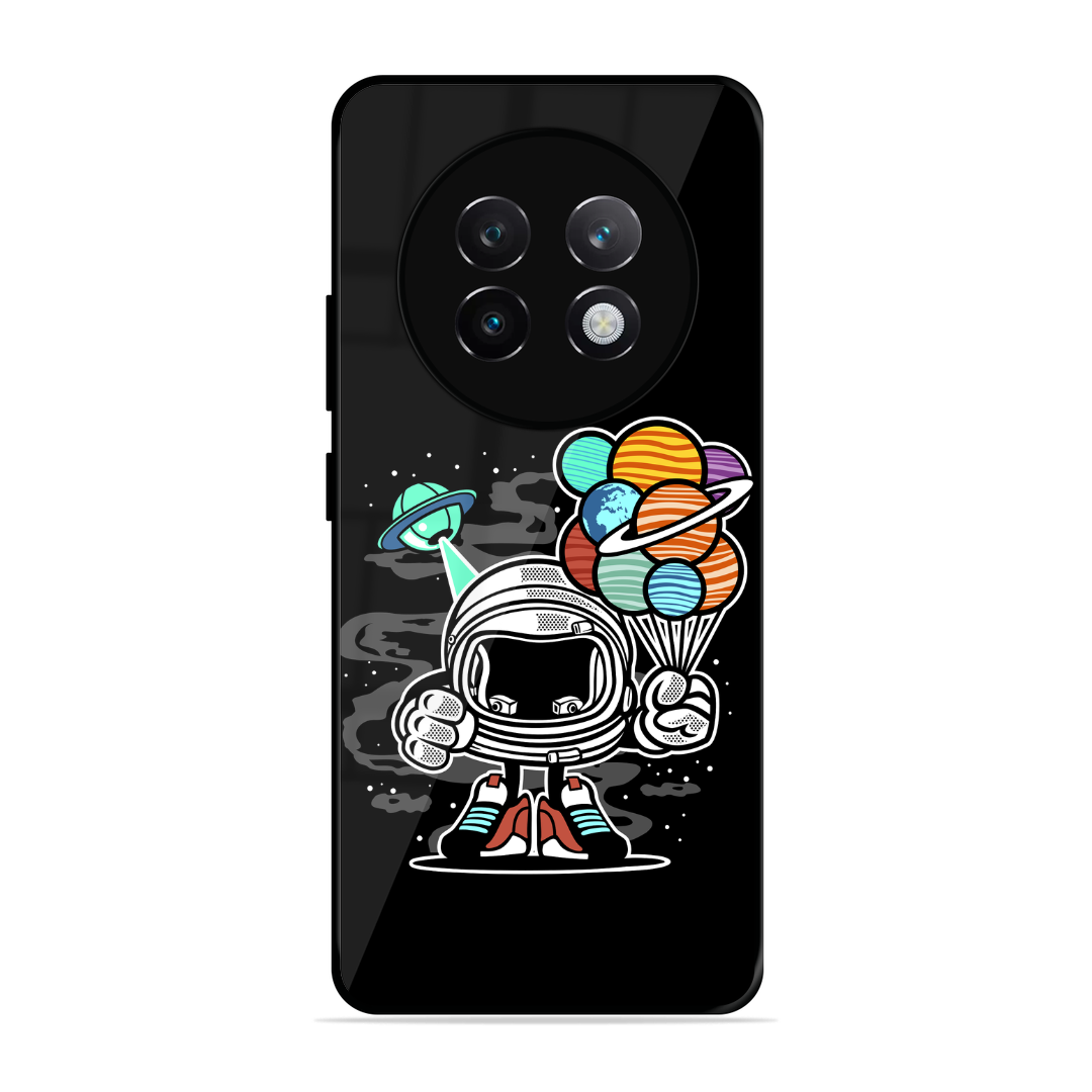 Tempered Glass Coated Metal Back Case for Realme 13 Plus 5G Hollow Astronaut