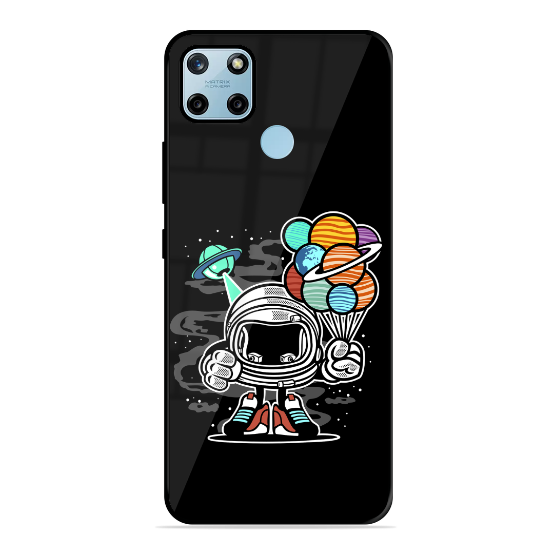 Tempered Glass Coated Metal Back Case for Realme C25Y Hollow Astronaut