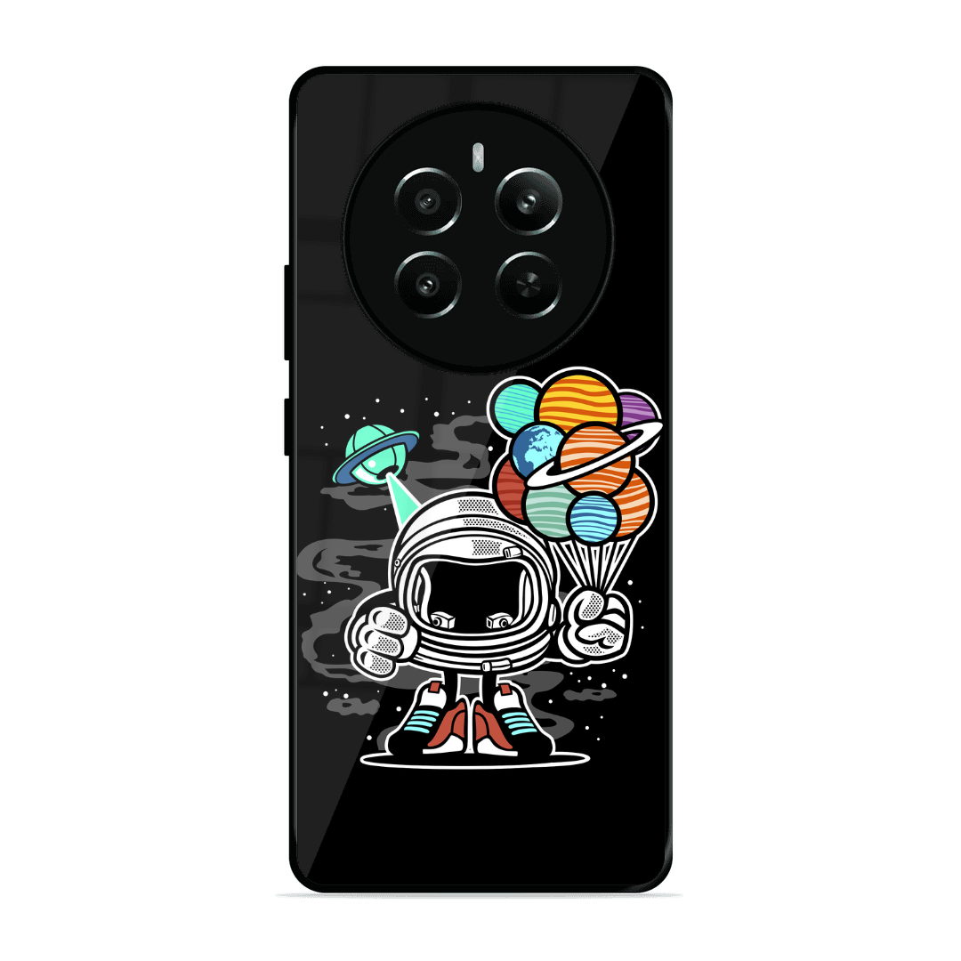 Tempered Glass Coated Metal Back Case for Realme P1 5G Hollow Astronaut