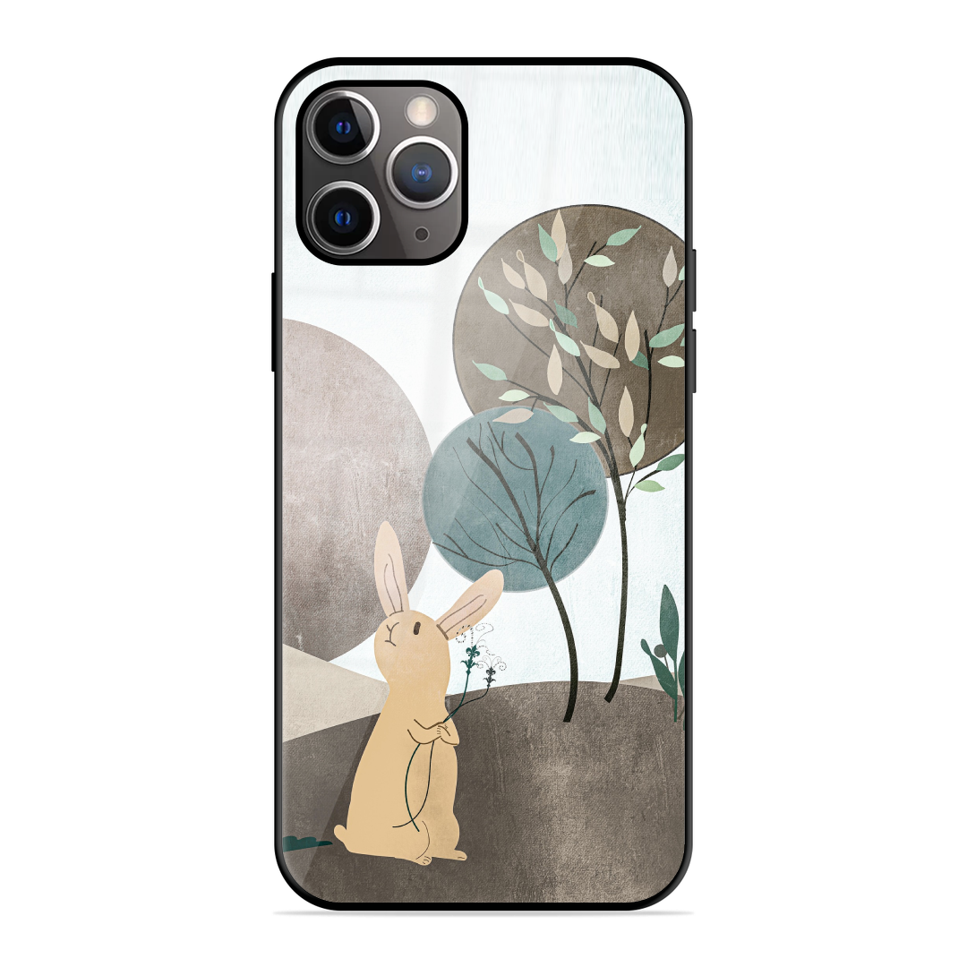 Tempered Glass Coated Metal Back Case for Apple Iphone 11 Pro Honey Bunny