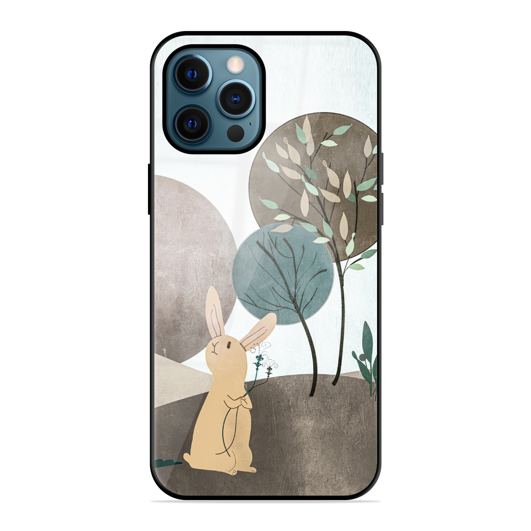 Tempered Glass Coated Metal Back Case for Apple Iphone 12 Pro Max Honey Bunny