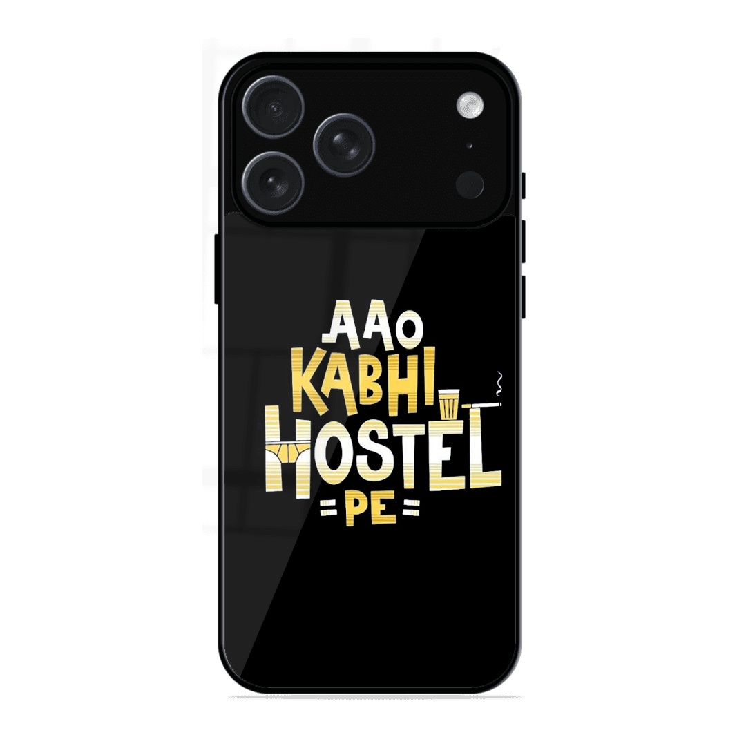 Tempered Glass Coated Metal Back Case for Apple-Iphone-17-Pro Hostel Life