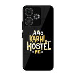 Tempered Glass Coated Metal Back Case for Poco M6 Plus 5G Hostel Life