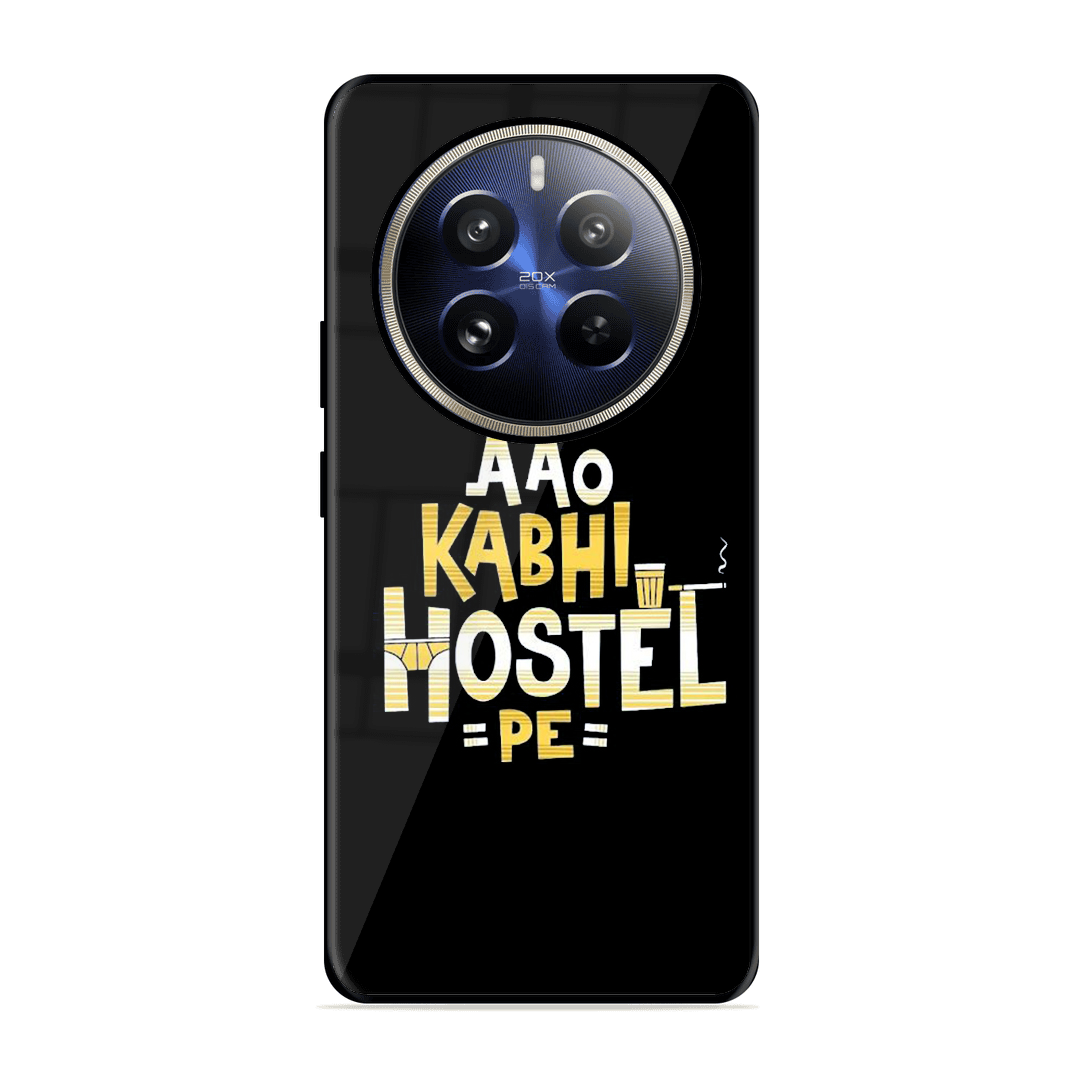 Tempered Glass Coated Metal Back Case for Realme 12 Pro 5G Hostel Life
