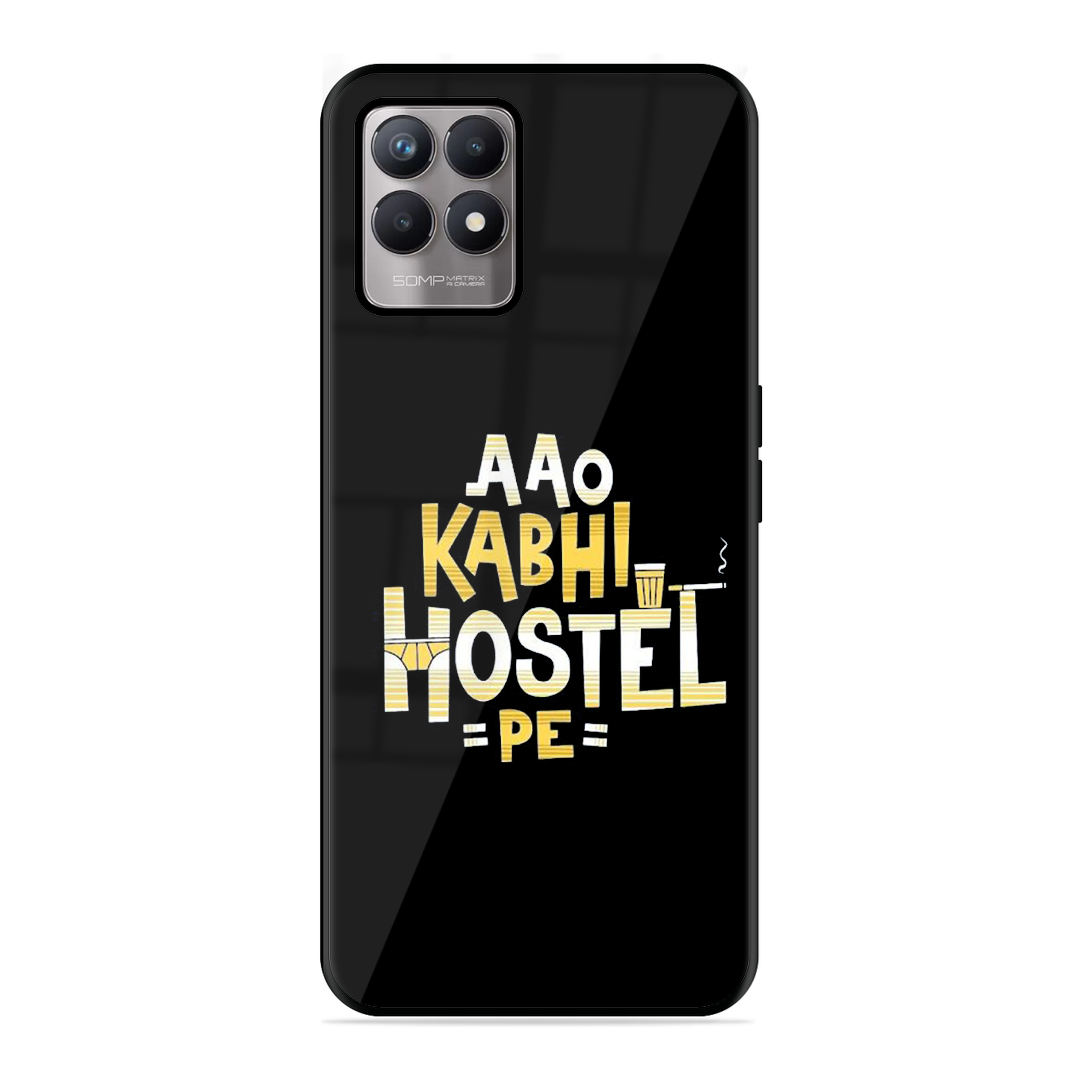 Tempered Glass Coated Metal Back Case for Realme 8I Hostel Life