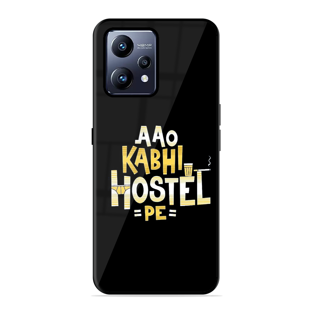 Tempered Glass Coated Metal Back Case for Realme Narzo 50 Pro Hostel Life