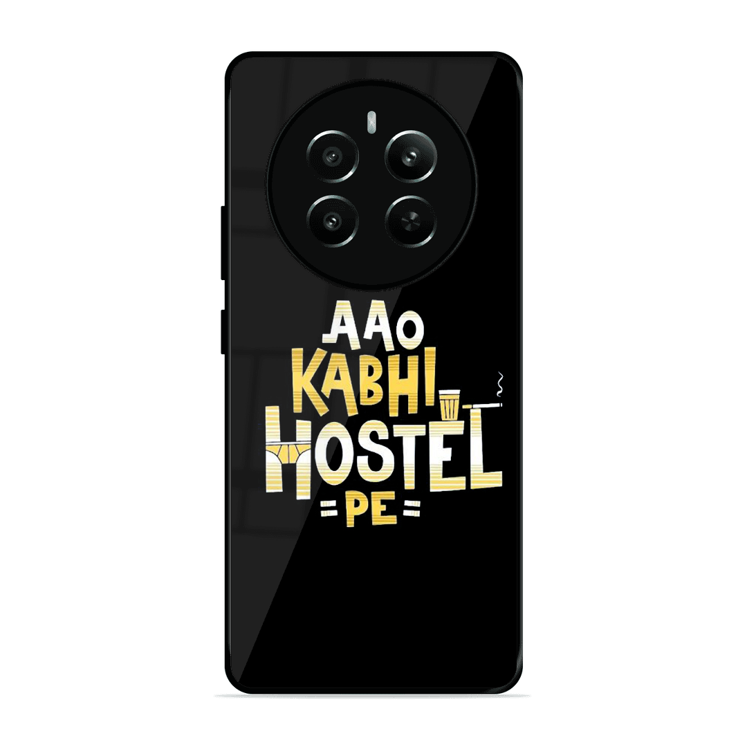 Tempered Glass Coated Metal Back Case for Realme Narzo 70 5G Hostel Life