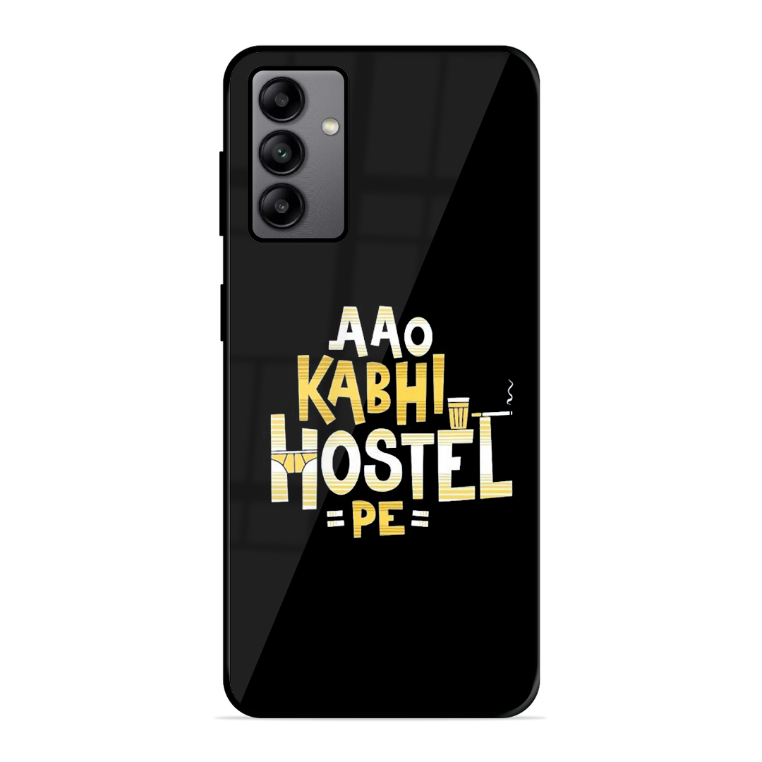 Tempered Glass Coated Metal Back Case for Samsung Galaxy A04S Hostel Life