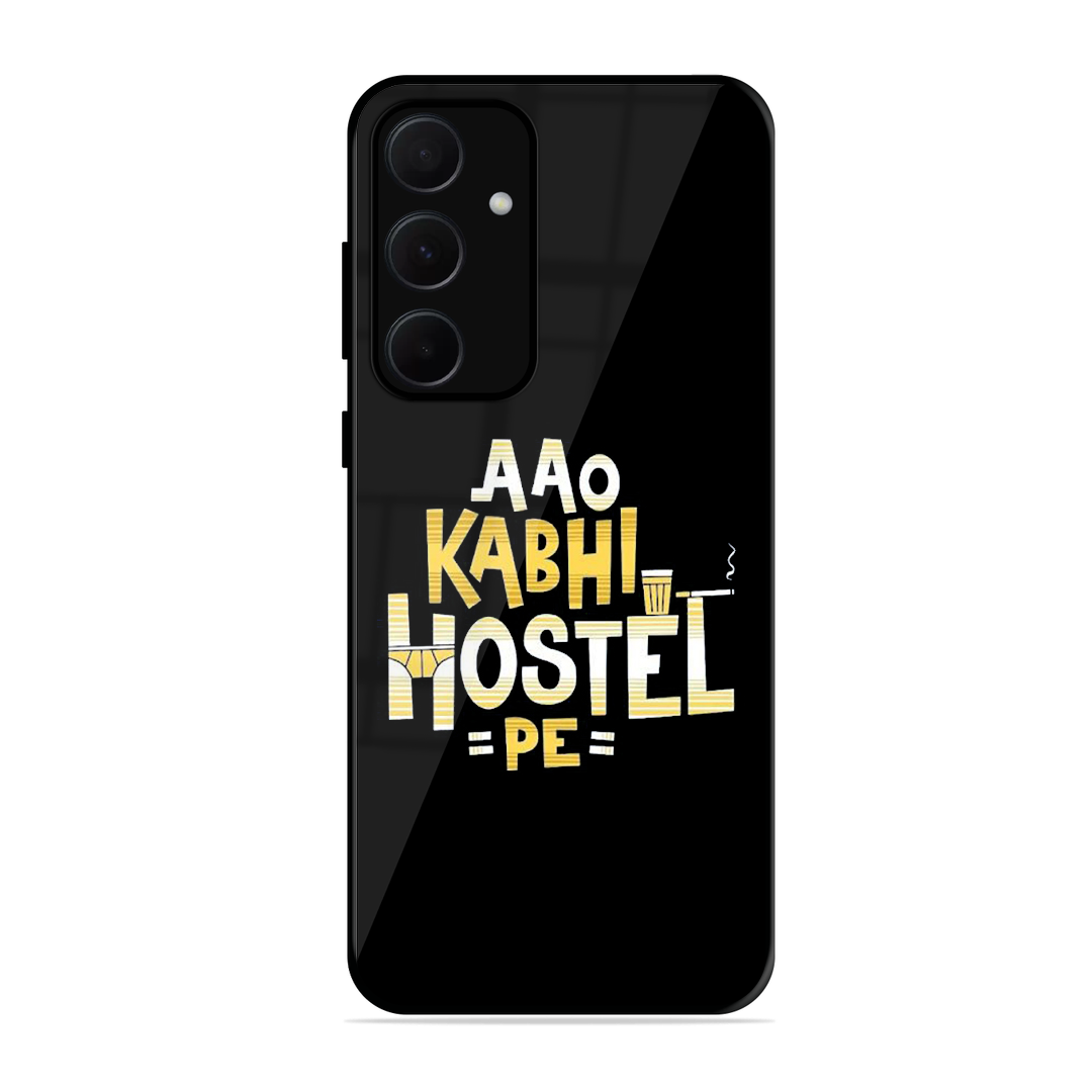 Tempered Glass Coated Metal Back Case for Samsung Galaxy A35 5G Hostel Life